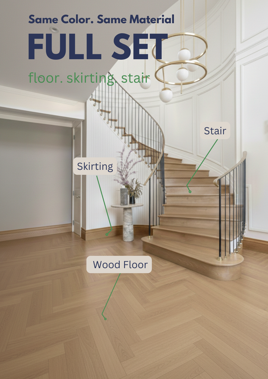 Complete Full Set Solutions With Staircase and Skirting. Click below for more details:
