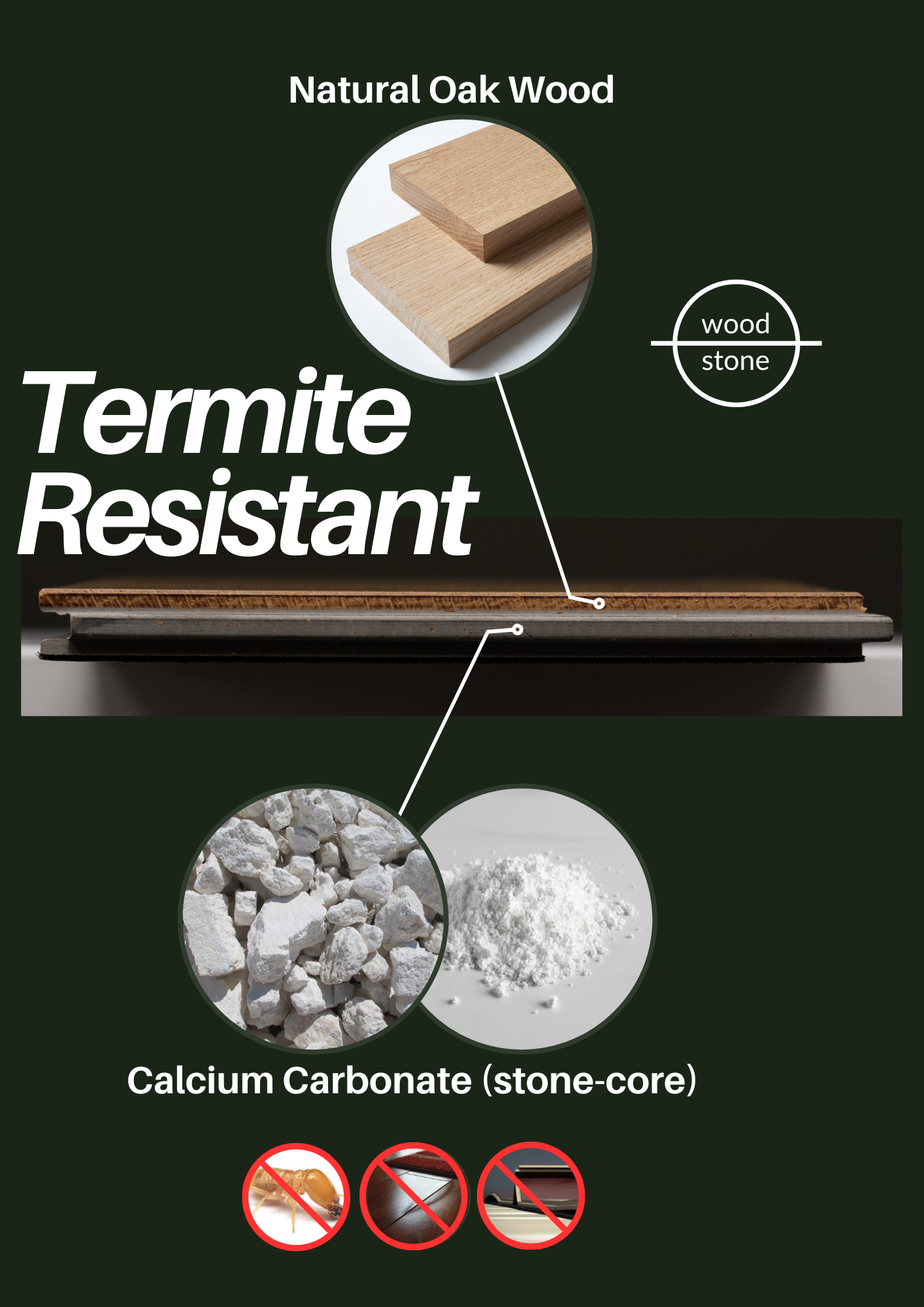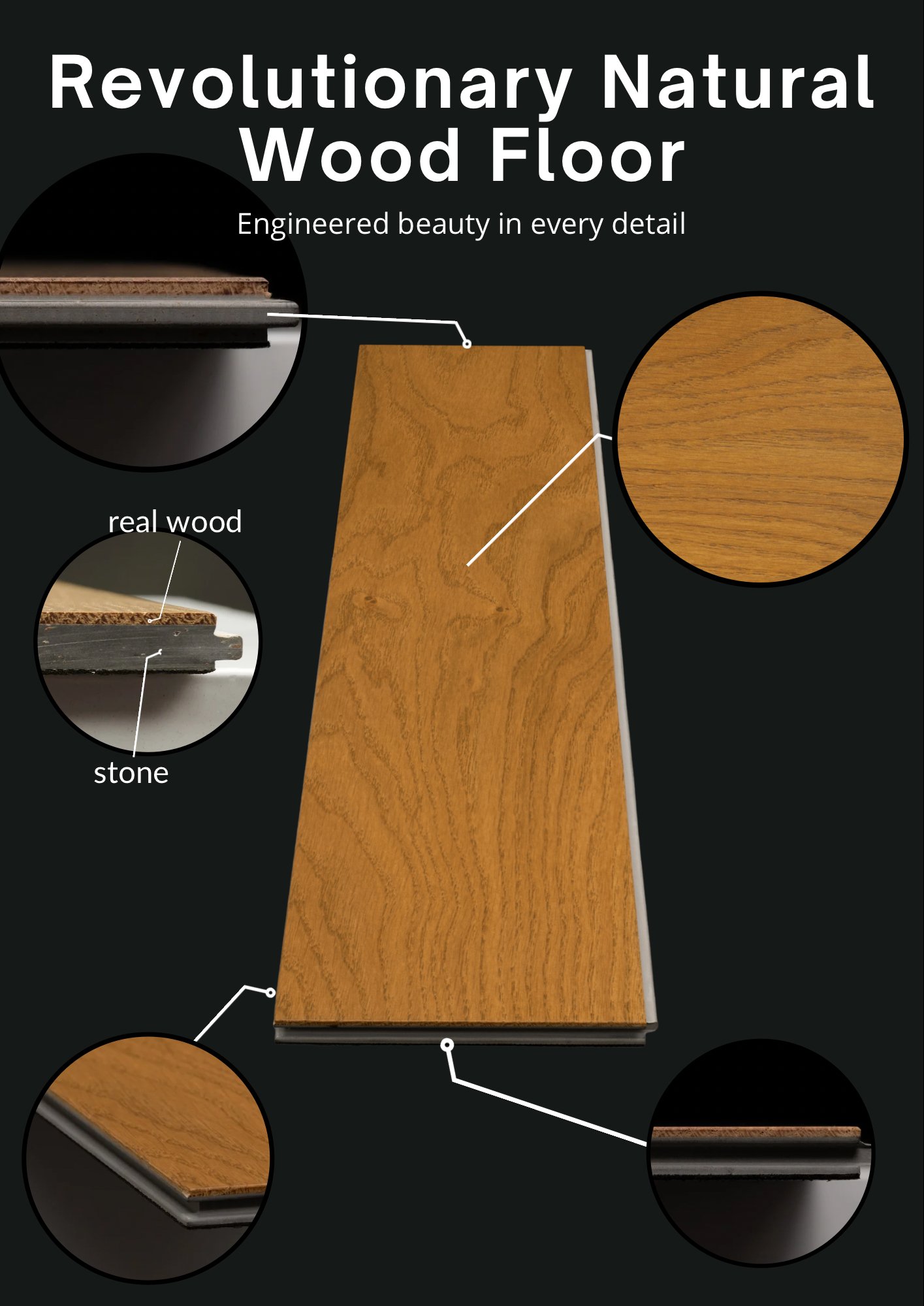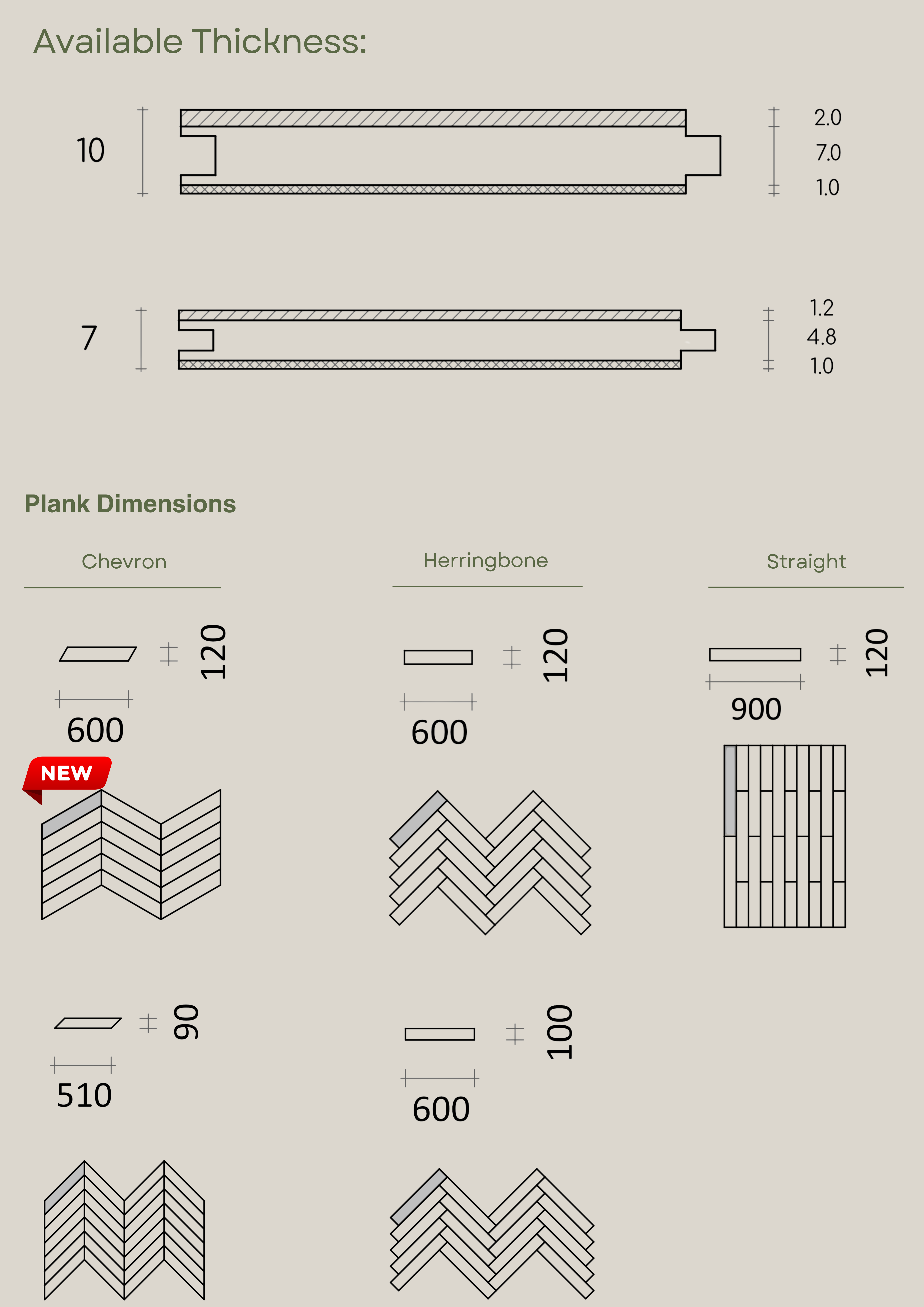 Compared to standard 15mm engineered (plywood) floor, our engineered (stone) floor 10mm design.